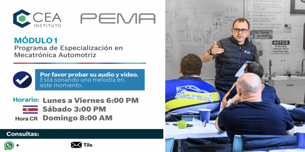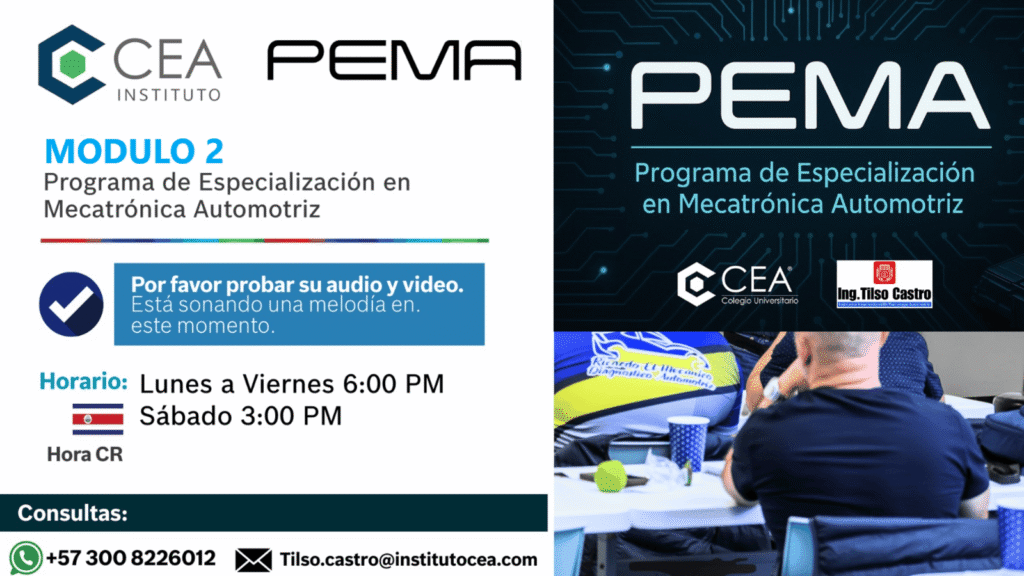 Descubre el fascinante mundo de la Tecnología Automotriz con nuestros Entrenamientos Online en vivo, como también en nuestros Presenciales impartidos por el reconocido Ing. Tilso Castro.